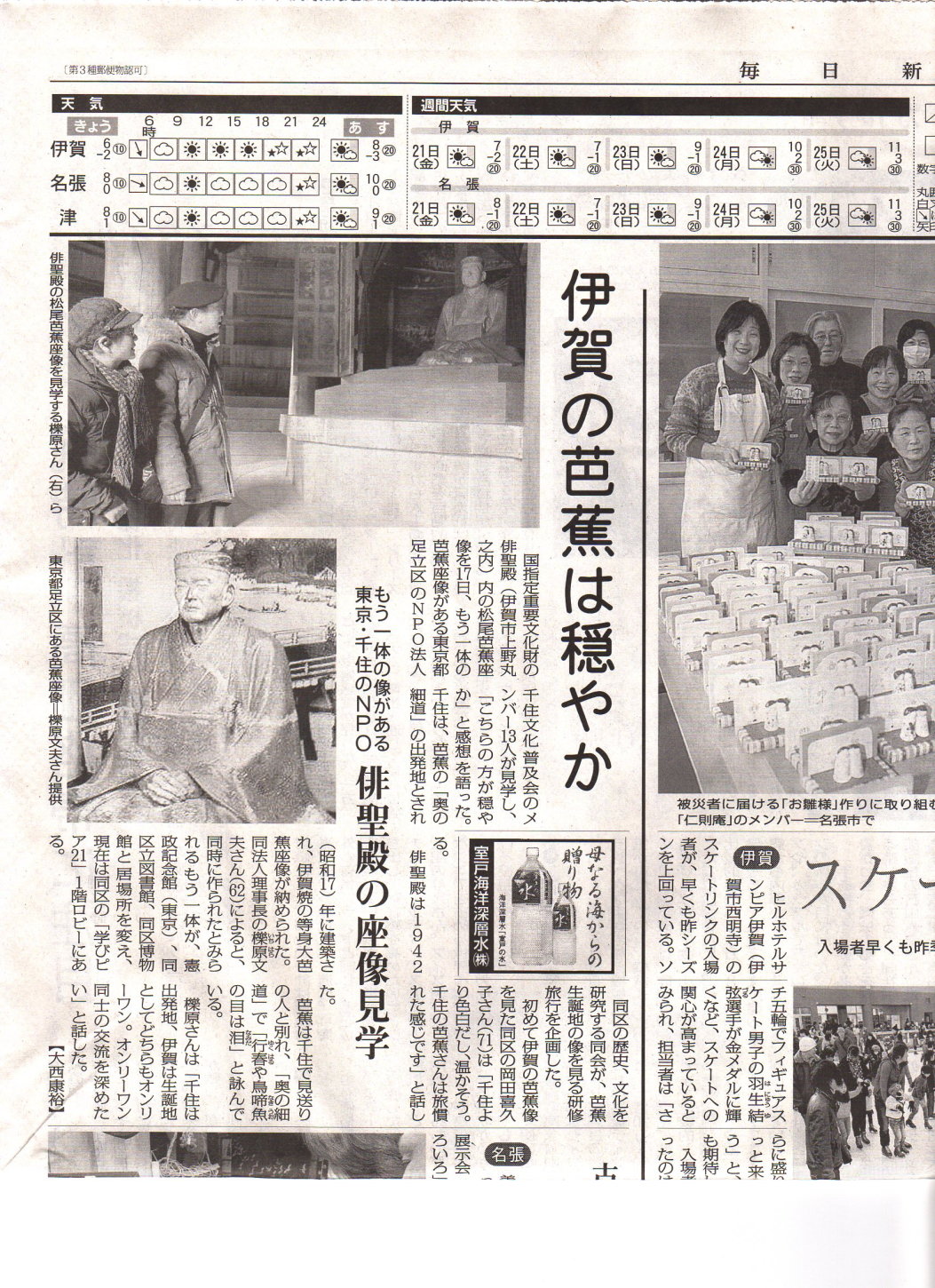 –ˆ“úV•·@yˆÉ‰ê”Åz@‚Q‚O‚P‚S”N‚QŒŽ‚P‚X“ú ˆÉ‰ê‚Ì”mԂ͉¸‚â‚©@‚à‚¤ˆê‘̂̑œ‚ª‚ ‚é@“Œ‹žEçZ‚ÌNPO@ ”o¹“a‚Ì¿‘œŒ©Šw NPOçZ•¶‰»•‹y‰ï